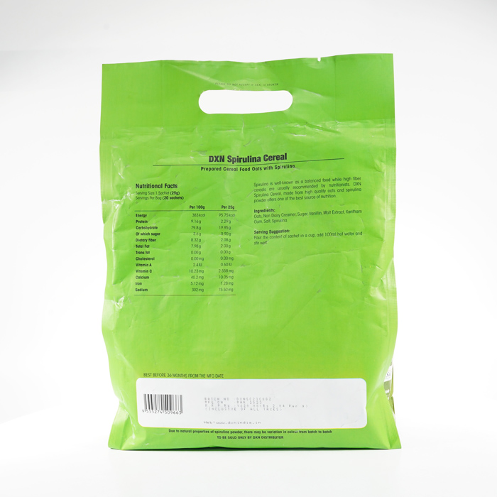 • A DXN Spirulina Cerealt nasiként is fogyaszthatod tejhez, joghurthoz vagy turmixokhoz keverve.