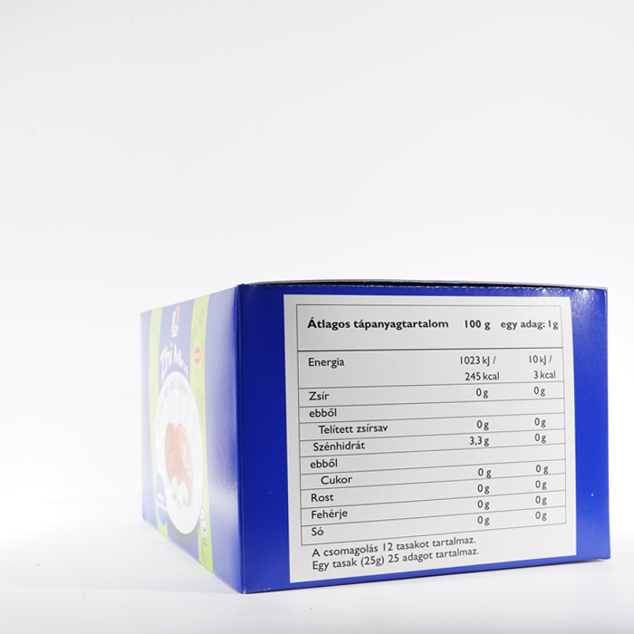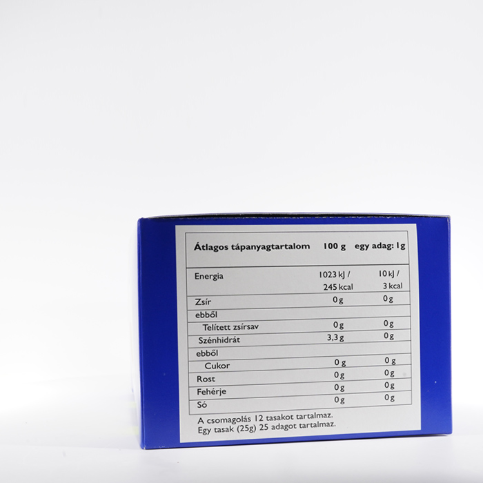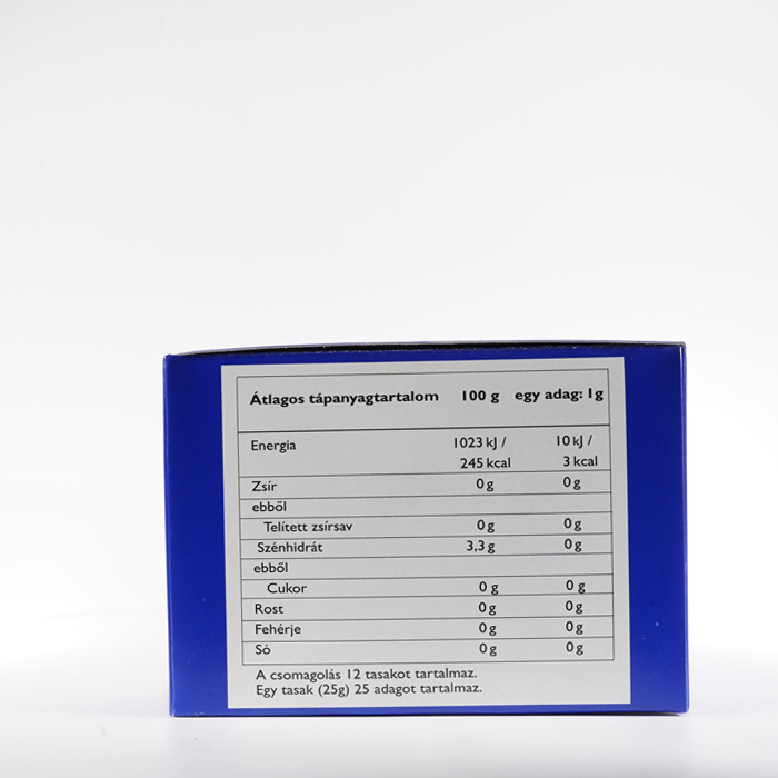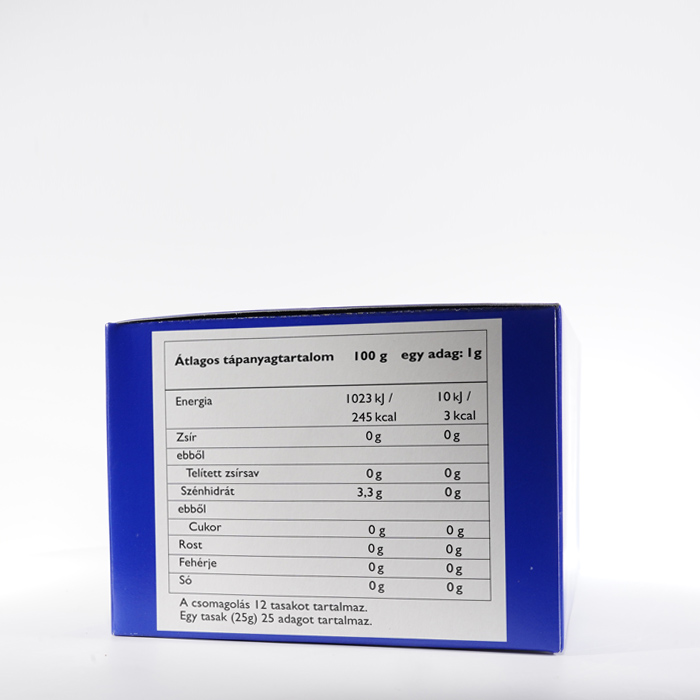 | Tápérték táblázat 1 Adag: 1g Adagolás Csomagonként: 25 | ||