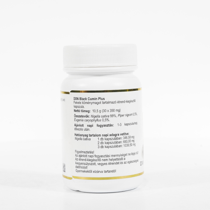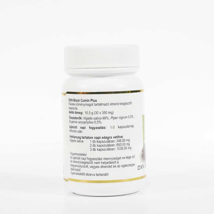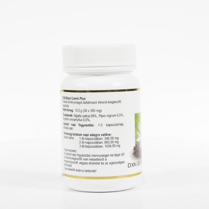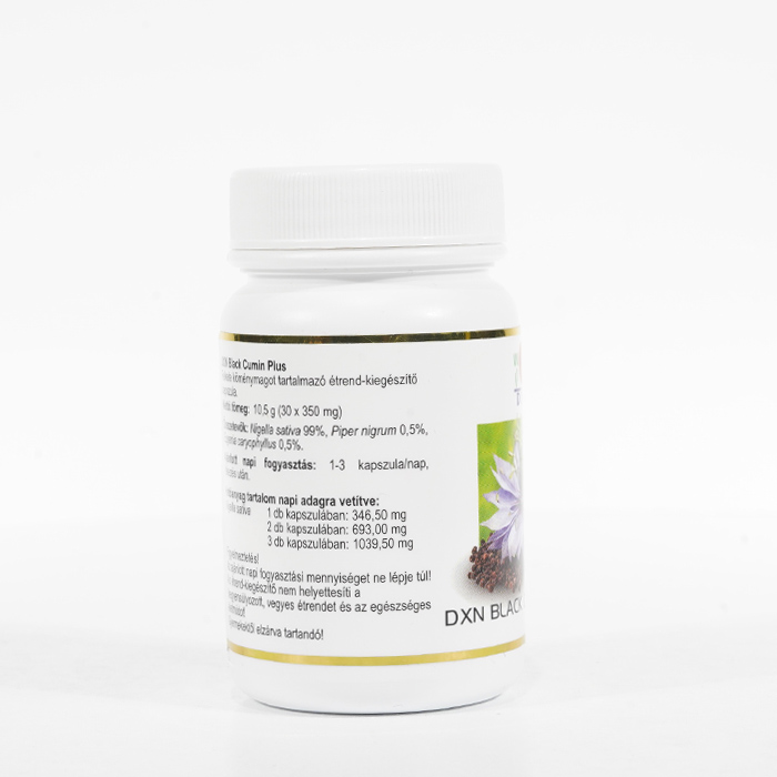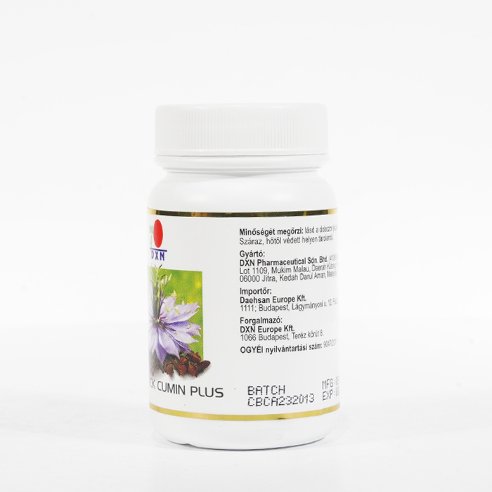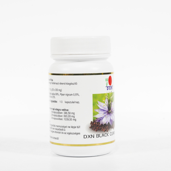 A DXN Black Cumin Plus 30-as kapszula a Nigella sativa más néven feketekömény magvait tartalmatta. A fekete köményt Habbatul Barakah, "Az áldás magjának" is nevezik.